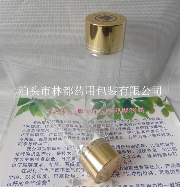 這款玻璃瓶為高硼硅玻璃材質(zhì),具有良好的化學(xué)穩(wěn)定性,客戶用于盛裝保健酒。 高硼硅玻璃酒瓶直徑為35mm,高度為122mm,瓶口外徑為30mm, 配的蓋子是電化鋁蓋, 是根據(jù)客戶要求訂做的, 蓋子上印刷的有公司logo.