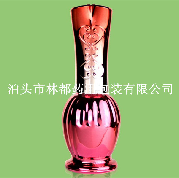 電鍍指甲油玻璃瓶無毒無害,電鍍加工只限制于瓶身外的表面外理加工,耐高溫,不褪色,安全,為產品提高附加值。此款電鍍指甲油玻璃瓶適用于盛裝高檔指甲油,符合高端指甲油產品的形象。