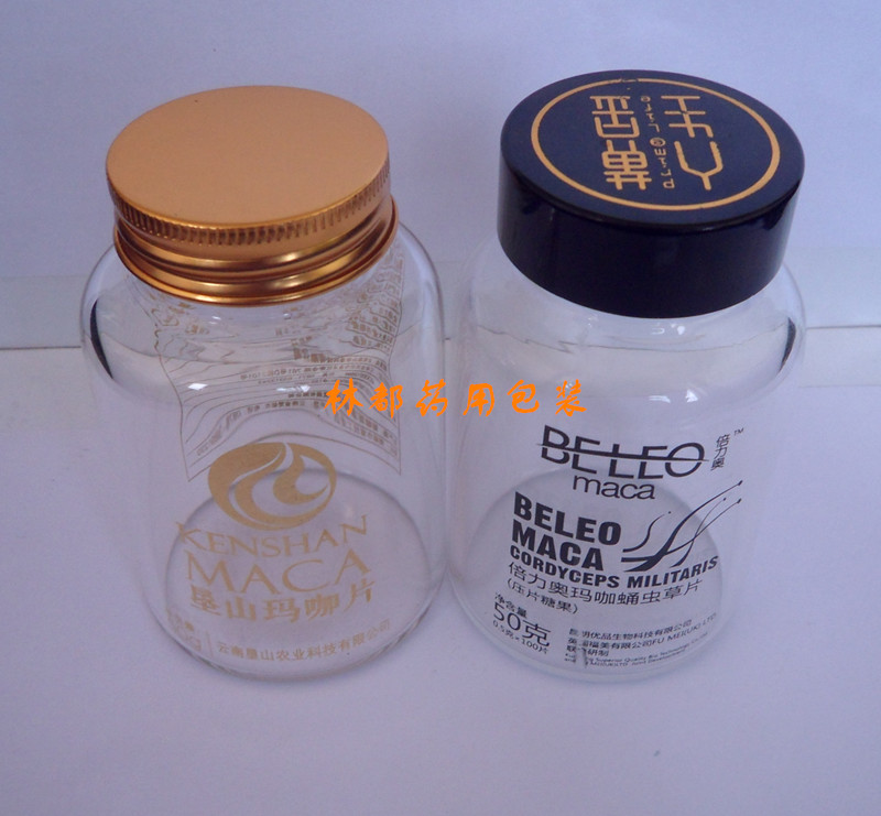 高硼硅玻璃瓶是采用進口高硼硅玻璃所生產的,具有的優勢是玻璃瓶具有通透性, 耐高溫,比普通玻璃瓶的化學穩定性和耐腐蝕性要好的多。這種高硼硅玻璃瓶被廣泛的用于高端的片劑,膠囊等,如蟲草含片、瑪咖片、蟲草膠囊,并可根據客戶要求在瓶身上烤花,配有各式蓋子。