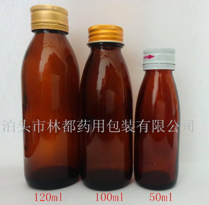 如圖中所示,這幾款玻璃瓶瓶型相同,屬一系列,容量從左到右分別為:120ml 100ml 50ml, 這幾款棕色口服液瓶瓶型美觀,深受客戶的青睞,主要用于盛裝各類功能飲品、 口服液等。